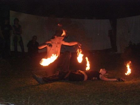 - Девушка, которая тогда выступала, только пару раз показала, как это делать. Так сказать самые азы. Мы же научились играть с огнем сами, а основным источником информации для нас послужил Интернет. Где-то три месяца тренировались, ну а потом стали устраивать представления на людях.