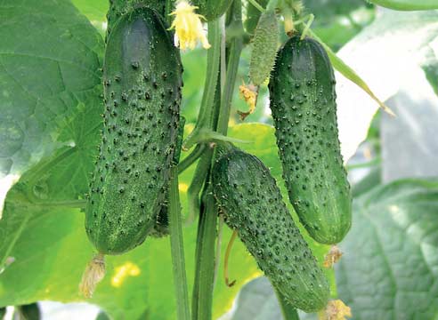 — Сеем только голландские. Семена стоят приблизительно одинаково: 10-12 грн за десяток. Есть спрос на «аякс», «престиж», «караоке», но фаворитом в течение нескольких последних лет остаётся «сатина». Этот сорт можно выращивать и под плёнкой, и без. Огурцы корнишонного типа: есть 5 см- срывай. Очень вкусные, хрустят, без горечи. И урожайные: в каждом узле по 2-3 огурца.