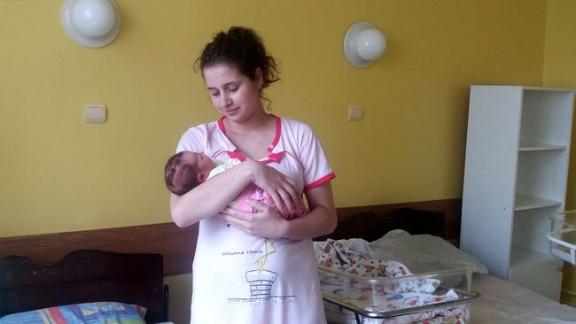 Побывав в отделении интенсивной терапии, мы с Еленой Николаевной спустились в послеродовое отделение, где, счастливые мамы находятся с новорожденными детками. Одна из таких мамочек – 19-летняя Катя Быховец, которая 19 июня родила девочку весом 3 кг 580 г, ростом 52 см и назвала доченьку Соней.