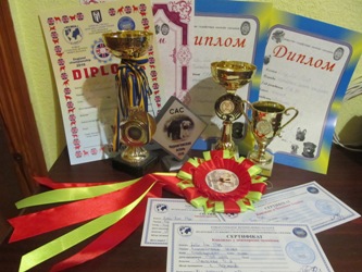 Буся з’явилася в Лисенків у 2015 році і вже з самого малечку пан Олег почав її дресирувати. На першій своїй виставці, а Бусі було тоді 6 місяців, вона отримала свою нагороду. З того часу не було жодної виставки, де б ця маленька красуня залишилася без уваги та призів.