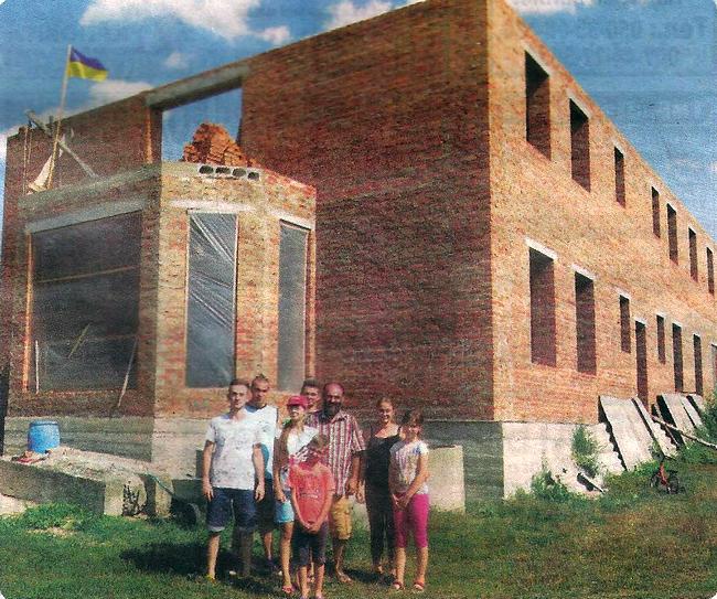 Місцеве сільгосппідприємство «Вікторія» зробило нам старт. Олександр Фенюк, син директора, йшов у депутати. Я розказав йому, що планую будуватися, показав дітей, проект будинку. Він дав нам перші сто тисяч гривень. Потім нас знайшла організація католиків, дали 200 тисяч. Патріарх Філарет благословив нас, виділив 90 тисяч гривень. Розробили проектну документацію. Спочатку планували 500 квадратних метрів. Та архітектори сказали: великий податок за такі квадрати доведеться платити. «Відрізали» частину погреба.