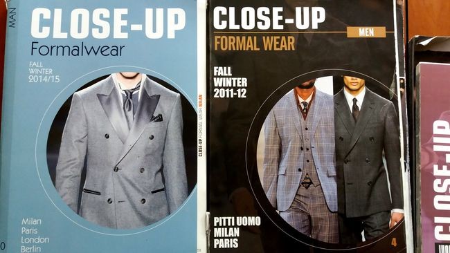 На столе у мастера лежат итальянские журналы CLOSE-UP с фотографиями со всех показов мод в Милане, Париже, Лондоне, Берлине, которые клиенты могут просматривать перед тем, как сделать заказ.