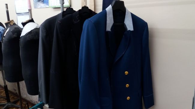 - Вчера работники лесного и охотничьего хозяйства по картинке из журнала заказали парадную форму темно-зеленого цвета для 20-ти сотрудников. Заканчиваем шить форму для генерала, почти готов сюртук с атласными лацканами. Шили фраки для нашего симфонического оркестра под руководством Николая Васильевича Сукача. Надо сказать, что мы одни из немногих, кто умеет шить настоящие фраки с фалдами, атласным кушаком и бабочкой.