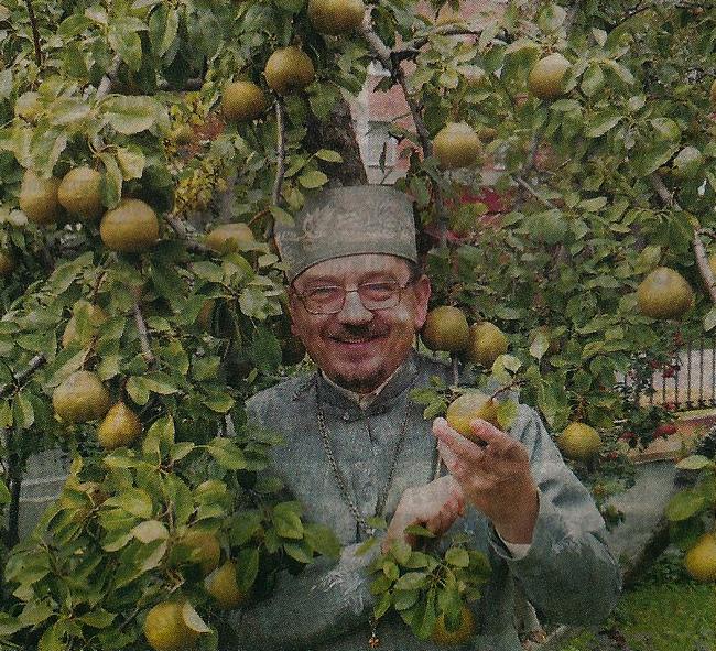 Отець Михайло пригощає прихожан плодами зі свого саду