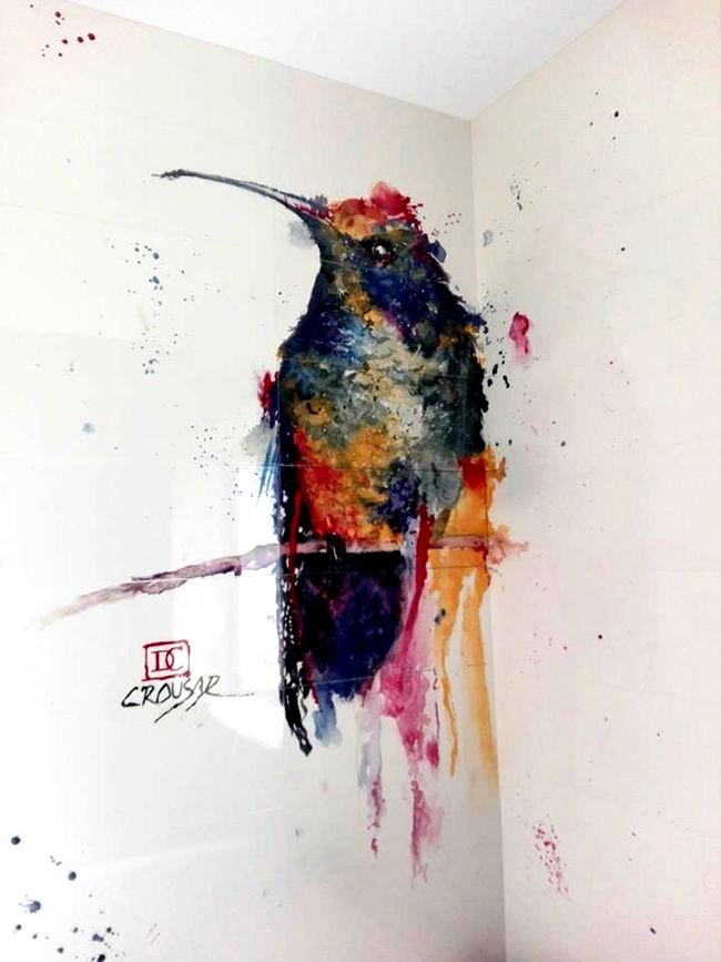 Вот недавно придумала такое концептуальное решение - нарисовала акрилом птичку, которую мы потом перенесли на плитку.