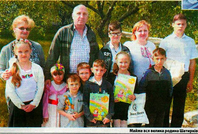 і довела! В Ані та її чоловіка Сергія - десять дітей! Двоє рідних і восьмеро прийомних. Один ліцеїст, шестеро школяриків і троє дошкільнят. Усі доглянуті й слухняні. Своїх батьків називають мамою й татом, дівчаток - сестричками, хлопчиків - братиками. Подружжя Шатирко створило дитячий будинок сімейного типу, й мама щомісяця отримує від держави офіційну заробітну плату - 35 відсотків від виплат на дітей. Чи хоч раз за п’ять років пожалкувала, що зважилася на такий відповідальний крок? Аня каже, що її материнської любові вистачить для всіх! Вона щаслива, коли її троє донечок та семеро синочків посміхаються й понад усе цінують свою велику і дружну сім’ю!