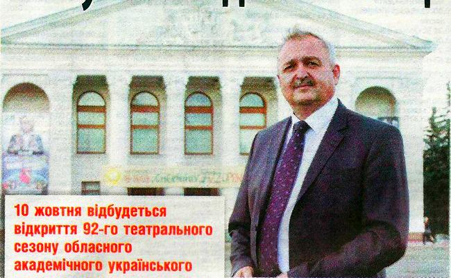 - У нас не тільки цікава афіша. Мине небагато часу, й ми відзначатимемо 100-річний ювілей. Тож уже нині розпочали роботи з музеєфікації нашого приміщення, оновлення стендів та фотовиставок. А читачам і глядачам побажаю якомога частіше бувати в театрі, адже один побачений спектакль -це ще одне прожите життя. Приходьте до нас, ми завжди вам раді!