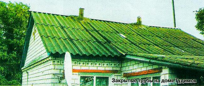 В Старых Боровичах Сновского района мы увидели дом с закрытыми трубами. Одна сверху затянута прочной целлофановой плёнкой, отверстие второй плотно закрыто пластмассовой крышкой. Первая мысль: неужели топят по-чёрному (дым идёт внутрь помещения и выходит через дверь)?