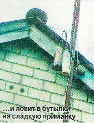 Для борьбы с шершнями Александр Васильевич использует также пластиковые бутылки со сладкой приманкой (насекомые туда залетают, а назад — никак). Развесил их поближе к гнезду: немного, но попались. Говорит: можно ещё заманивать пивом или перебродившим квасом. А самый лучший способ — опрыскать гнездо сильным ядохимикатом, а потом сбить его и сжечь. Но до гнезда не так просто добраться.