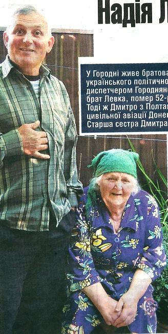 У Городні живе братова (жінка брата) Левка Лук’яненка, політв’язня (відсидів 26(!) років), дисидента часів СРСР, потім українського політичного діяча, 80-річна Надія Лук’яненко. Удвох із сином, 56-річним Дмитром Лук’яненком, диспетчером Городнянських РЕМ (районні електромережі). Чоловік Надії Артемівни, Віктор Григорович, рідний брат Левка, помер 52-річним у 1983 році.