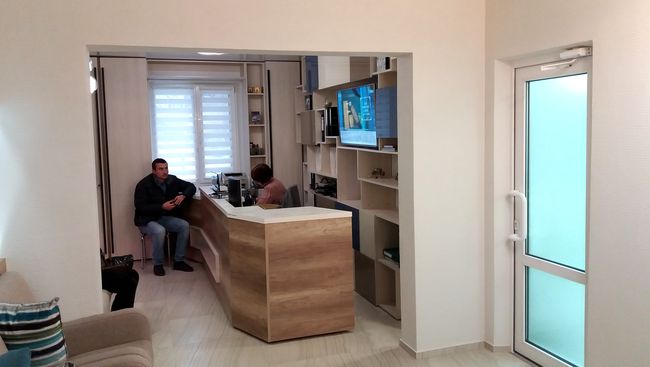 - Верно. Было переоборудовано полностью все помещение, закуплено и установлено новейшее оборудование, мебель. Не успели только изменить фасад.