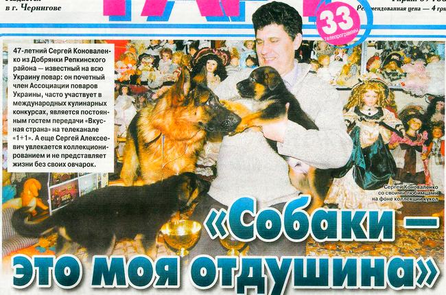 - Немецкими овчарками я увлекался всегда. Для меня нет собак умнее и красивее. Лет пять назад я решил завести немецкую овчарку, потом еще одну - в пару. Со временем увлечение переросло в небольшой питомник, - рассказывает Сергей Коноваленко. — Овчарки — это моя отдушина. О них мы заботимся вдвоем с женой, помогают и сыновья — 17-летний Богдан и 13-летний Антон. Сейчас у нас пять овчарок: Ремалд, Рема, Ревальд, Рэнда и Гроза. Сами дрессируем их, возим на различные конкурсы. Гордимся, когда возвращаемся с наградами. В международных конкурсах со своими овчарками часто принимает участие мой друг Руслан Асадов - он уже 15 лет курирует эту породу собак в Черниговской области, тоже имеет свой питомник. О собаках мы можем беседовать часами. Думаю, излишне говорить, что иногда овчарки понимают и чувствуют тебя лучше, чем люди. Не перестаю восхищаться их преданностью, верностью, а иногда и хитростью. Например, мои собаки всегда, когда сделают шкоду, закрывают глаза лапами. Это выглядит очень забавно, уже и ругать их не хочется. А еще они очень любят кататься в автомобиле. Поэтому, когда слышат фразу «Поехали кататься», мгновенно вскакивают в салон. Сидят на пассажирских местах, как люди. Мой друг шутит: «Жаль, что за руль собак пускать нельзя».