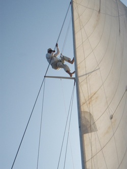 «Я займався нерухомістю, – розповідає пан Геннадій. – Після того, як вдарила криза, мої доходи зійшли «на нуль», тож я вирішив реалізувати дитячі мрії, реалізувати які впродовж життя мені було ніколи. Я купив один «швербот» (тип яхти, – Авт.) під назвою «Місяць» – і поїхав у Славутич дружити з місцевим вітрильним клубом. Шість років тому ввесь мій вітрильний досвід зводився до одноразової прогулянки на морському човні у 18-річному віці».