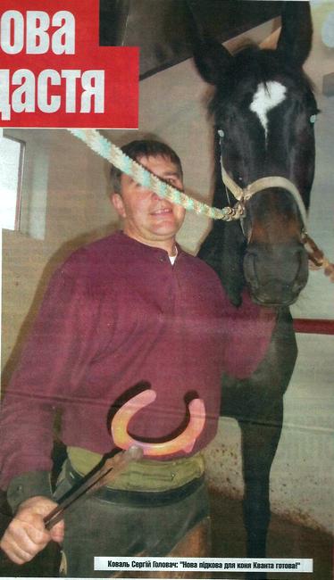 — Кувати навчився, коли працював на київському іподромі. У 2004-ому повернувся додому, в Мену, і почав кар’єру коваля. Своїх коней попідковував. У дитячому садочку, бо в гололід з двору виїхати не могли. Дав у газету оголошення. Один чоловік, з села, подзвонив: «Хочу підкувати коня». Супер. Я йому все порахував — він погодився. Приїхав, підкував, сподобалось. А тоді в розмові кажу, що це ж треба буде через місяць-два повторювати. Тоді це коштувало 400 гривень. Той: «Ти що, в мене черевики дешевші». Він же думав: раз підкував і забув.