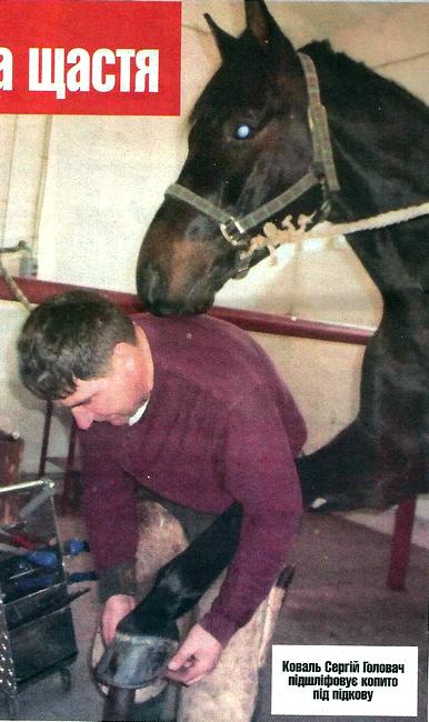 — Ні. Це — як ми нігті стрижемо. Але коли при ковці (а від цього ніхто не застрахований) цвях попадає в живе, кінь починає сіпатися. Значить, проблема, треба зразу витягти. Бо як не звернути уваги, кінь не ставатиме на ногу. Починається запалення, нарив. Знімають підкову, лікують. І в мене таке траплялося. Перша моя заковка в житті була: підкував свою кобилу — перестала ходити. Підковка й заковка — різні речі. Закував — це коли забив цвях куда не надо.