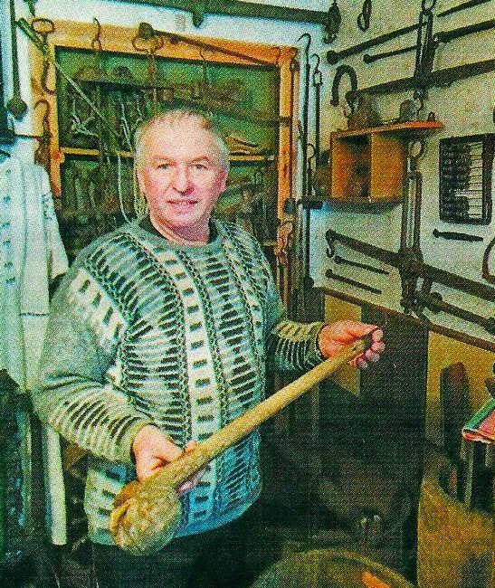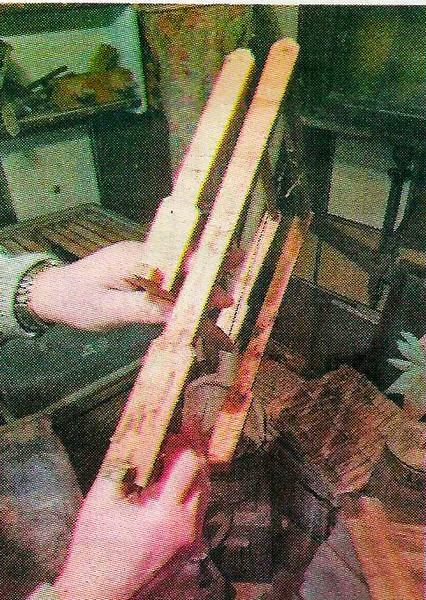 Ось цим металевим інструментом довбали дуплянки. Він від часу уже поржавів. А ще скільки саморобних пристроїв! Це й ковані свердла, різні рубанки, навіть є ваги ручної роботи. їх не злічити. На одних - мідний вензель тульського коваля: Д.Б. 1759 рік.