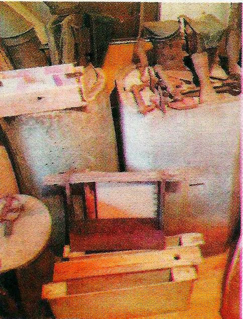 А яких тільки не побачиш ящиків для виведення маток! Є й саморобна маска для захисту обличчя від бджіл, металева сіточка, тоненька. Раніше прозорих тканин не було. У старовинній величезній шафі багато бджоляр-ських книг і журналів, що побачили світ ще в минулому столітті. Є й старовинний фаянсовий кухлик для меду. Подив викликають залізні ножиці, якими у часи Петра І боярам бороди підстригали, і пасічникам - теж.