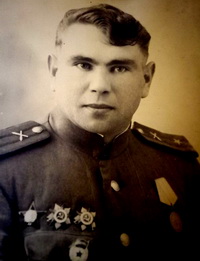 «Це було біля річки Чорної, Круглого гаю. Ми прорвали ворожу оборону. Було 150 гаубиць. Далі просувалися з боями до Курської дуги. Дорогою бачили поповнення. Піхоту кидали у бій навіть без гвинтівок. В той час, як у німців були кулемети. Мене милував Бог, бо я подумки постійно молився. Якось мені навіть віщий сон наснився. Ми форсували Дніпро і мали їхати тією дорогою, де вже пройшло багато людей і машин. Уві сні мені було попередження, мовляв, не йдіть тим шляхом. Та не міг же я про це командиру сказати. Тільки записав собі у щоденник, який і досі бережу. Таки поїхали... І підірвалися... Нас було в машині шестеро. Двоє загинуло, двоє померло від поранень. Я був поранений: роздробило ногу і щелепу. Весь у крові. Підлікувався і знову на війну. Дослужився до помічника начальника штабу артилерії дивізії. Пройшли всю Україну. Наш корпус направили на війну в Польщу. З Польщі ми пішли на Німеччину. Там я їздив на розвідувальному бронетранспортері, який дістався від союзників. На ньому і підірвався. Осколочне поранення очей, обличчя. В госпіталі мені сказали, що я народився у двох сорочках. Та Перемогу я таки зустрів у Берліні. Опісля ще певний час проходив службу в Радянських окупаційних військах».
