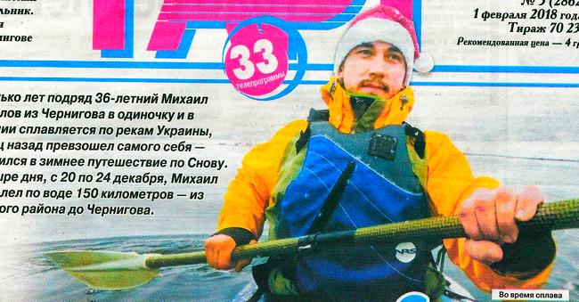 Несколько лет подряд 36-летний Михаил Закусилов из Чернигова в одиночку и в компании сплавляется по рекам Украины, а месяц назад превзошел самого себя — отправился в зимнее путешествие по Снову. За четыре дня, с 20 по 24 декабря, Михаил преодолел по воде 150 километров — из Сновского района до Чернигова.