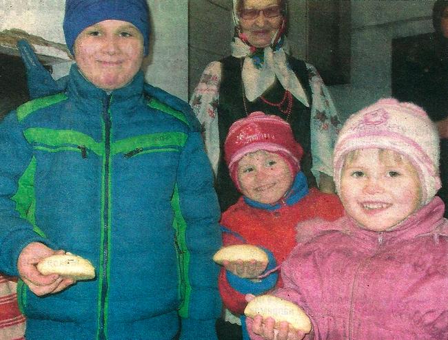 Першими знімають пробу онуки Ольги Сергієнко (зліва направо): Діма, Катя та Аня Олещенки. За ними - Олександра Шевченко