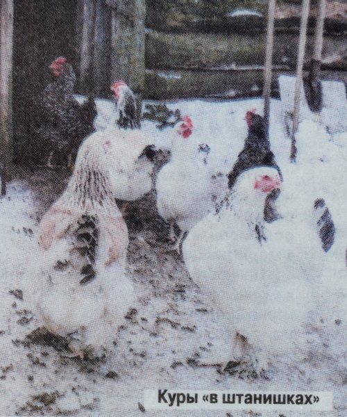 Кроме обычных, завёл кур «в штанишках» — породы брама серебристая. Порода мясо-яичная. Приспособлена к холодному и влажному климату, но не суперпродуктивная. А ухода требует большого, потому что из-за густого оперения на ногах мохнатые куры могут собирать «на штанишки» много грязи, а вместе с ней и разных инфекций.