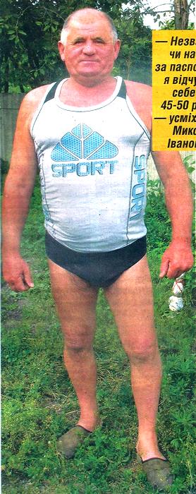 — Незважаючи на вік по паспорту, я відчуваю себе на 45-50 років, — усміхається Микола Іванович. — А все через те, що веду здоровий спосіб життя, займаюся і йогою, і фізкультурою. Як казав Арнольд Шварценегер: «Спорт убиває людину, а фізкультура продовжує життя».