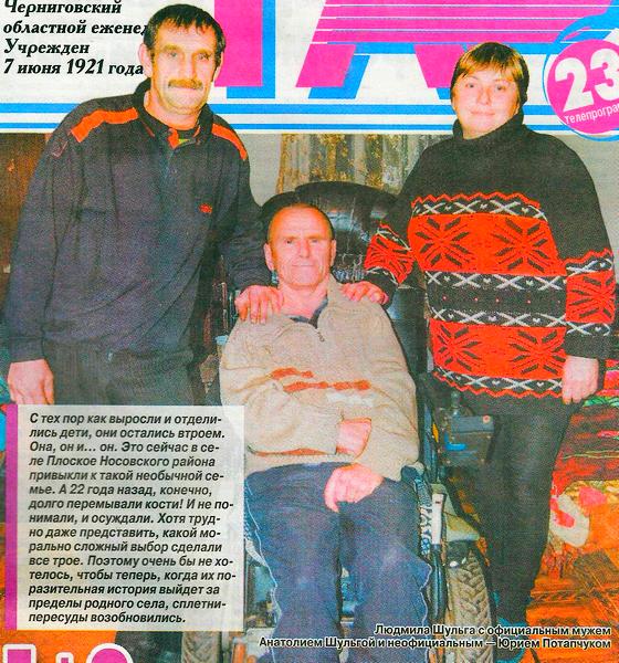 С тех пор как выросли и отделились дети. они остались втроем. Она, он и... он. Это сейчас в селе Плоское Носовского района привыкли к такой необычной семье. А 22 года назад, конечно, долго перемывали кости! И не понимали, и осуждали. Хотя трудно даже представить, какой морально сложный выбор сделали все трое. Поэтому очень бы не хотелось, чтобы теперь, когда их поразительная история выйдет за пределы родного села, сплетни-пересуды возобновились.