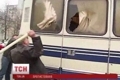 Машины с милиционерами и налоговиками двигались в сторону столицы. Мужчины и женщины в касках, с битами и палками перекрыли главную улицу Борисполя, окружили автобусы и начали выбивать стекла, прокалывать колеса и доставать из автобусов документы силовиков.