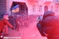Молодые мужчины установили сцену и митингуют в поддержку власти.На площади перед зданием Верховной Рады Украины установлена сцена с символикой Партии регионов, истоят сторонники этой политсилы.