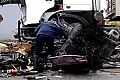 Практически ничего не осталось после ДТП в Донецке от автомобиля "Опель Омега". По данным ГАИ, легковушка выехала на полосу встречного движения и столкнулась с грузовиком "МАЗ-543203-220" с полуприцепом.