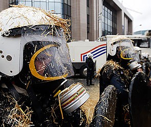Фермеры закидали полицейских сеном и яйцами
