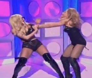 Две певицы появились на телешоу почти в одинаковых нарядах – минимум черной одежды и высокие черные ботфорты. Мадонна и Lady Gaga, выйдя на сцену, начали танцевать под электронную музыку, но Lady Gaga вдруг обратилась к поп-королеве: "Что, Мадонна, не можешь попасть в такт?", а 51-летняя Мадонна ответила: "Похоже, твой парик надо поправить!" - и вцепилась ей в волосы.