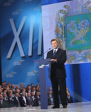 Марафон предвыборных партийных съездов стартовал. В пятницу, 23 октября в него включилась и Партия регионов. В этот день в Международном выставочном центре столицы она провела свой XII съезд, на который съехалось несколько тысяч человек. В ходе съезда его делегаты единогласно выдвинули кандидатом на пост президента Украины лидера Партии регионов Виктора Януковича.