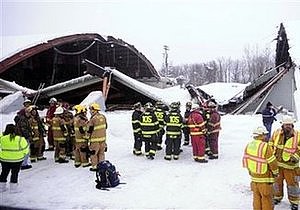 Частичное обрушение крыши произошло на стадионе американского города Ростравер, штат Пенсильвания, во время хоккейного матча.