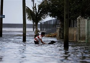 Сотни людей собрались в районе прибрежного бульвара Малекон (Malecon), чтобы посмотреть на затопленные кварталы.