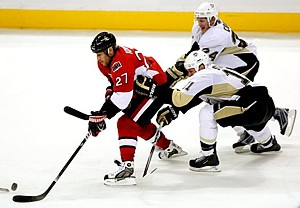 Нагадаємо, що в тому матчі переможець був визначений лише в третьому овертаймі - на 108-й хвилині Оттава вирвала перемогу у Пітсбурга.