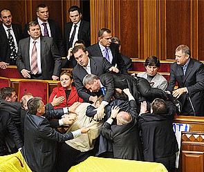 Напомним, что ставшее уже легендарным заседание Рады состоялось в минувший вторник. Депутатам предстояло ратифицировать соглашение о продлении пребывания российского Черноморского флота на территории Украины. Тема оказалась настолько животрепещущей, что некоторые из народных избранников учинили потасовку и начали закидывать спикера парламента Владимира Литвина яйцами. Но тот, в свою очередь, мужественно провел заседание.
