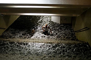 По словам находящихся там сотрудников правоохранительных органов, "выход закрыт, потому что коридор залит водой".