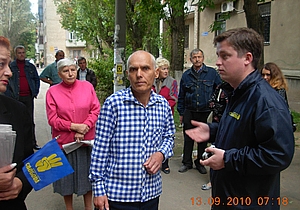 Сегодня, в день заседания, представители ВО Свобода устроили перед зданием суда митинг с плакатами в защиту Ильченко. Сам ответчик пришел в суд с переводчиком, и сообщил, что не понимает никакого языка, кроме украинского.