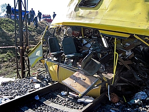 Накануне утром на железнодорожном переезде пассажирский автобус столкнулся с локомотивом. 43 человека погибли.