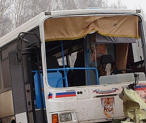 Первичный осмотр разбившегося в Красноярском крае о фуру пассажирского автобуса показал, что причиной аварии стало лопнувшее переднее колесо автобуса. "У автобуса лопнуло переднее левое колесо, в результате чего его вынесло на встречную полосу", - цитирует "Комсомольская правда" представителя пресс-службы ГУ МЧС России по Красноярскому краю.