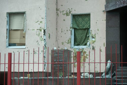 У ГУ МВС України в Запорізькій області агентству "Інтерфакс-Україна" повідомили, що постраждав пам'ятник і частково - сам будинок обкому. У ньому повилітали шибки й оздоблення.