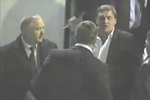 Телеканал ТВi обнародовал видеозапись драки Константина Стогния, который на тот момент занимал должность главного советника министра МВД Анатолия Могилева, с депутатом от Народной самообороны Юрием Грымчаком.