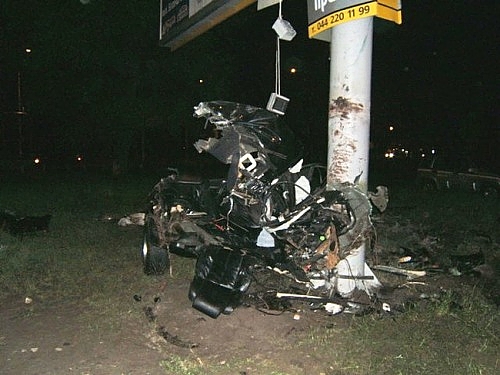 В Киеве BMW от удара о столб разлетелся на куски, три трупа (фото)