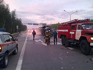 Автобус сгорел полностью. Личности погибших пока не установлены.