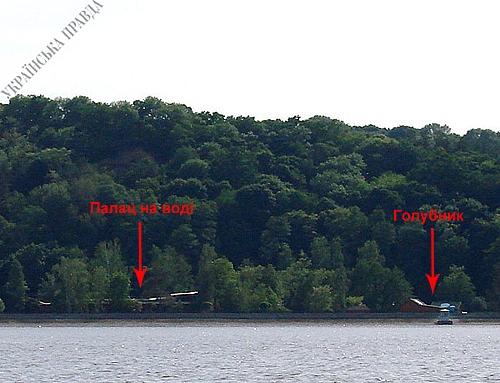 По данным источников, "Дворец на воде" Януковича стоит в заливе "Межигорья" на берегу Киевского моря, рядом с его голубятнями. По плану застройки бывшей государственной резиденции это место называется "Яхт-клуб".