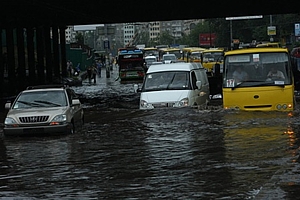 Досталось от дождя больше всего Шулявке. Переход под пр. Победы возле метро затопило полностью. Оттуда даже выплывали люди. «Подхожу к переходу, вода до потолка. И тут раз — мужик выплывает с барсеткой. Сказал, что деньги поплыл забирать», — рассказывает киевлянин Иван. Пр. Победы был усеян сорванными люками. «Там еще плавали баклажаны, помидоры, тапочки. Это мне все в лобовое стекло врезалось. Видно, из затопленных переходов», — говорит киевлянин Алексей.