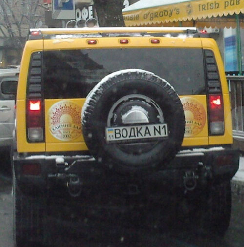 Фантазия киевлян не знает границ. По городу ездят машины с номерами "Талиб", "Тойота" "Джедай", "Хонда" "Типочек", "Жигули" "Булочка", "Мицубиси" "Фурия". Есть те, кто пытается подчеркнуть свой статус, например, как хозяин авто с номерами "Элита" или "Директор". Другие выражают на номерах свое пристрастие к напиткам, причем даже с помощью химических формул: "Горилка", "С2H5OH" (формула спирта), "C8H10N4O2" (химическая структурная формула кофеина).