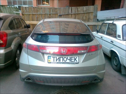 "Именные номера сейчас очень популярны. Но часто человек заказывает, а желаемое слово уже занято. Например, хочет он номер "Крутой", а таких крутых уже по Киеву десяток ездит - "Крутой 1", "Крутой 2" и т. д. Приходится ломать голову над чем-то пооригинальнее. Один мужик звонит как-то, слышно, что подвыпивший, говорит: хочу заказать номер "Тещакоза". Мы ему, конечно, отказали, но зато насмеялись", - рассказывает сотрудник одной из фирм Алексей Малышев. Несмотря на то что официально запрещено наносить на номер нецензурные слова, такие хотя редко, но встречаются. Например, в Киеве был замечен номер "Бл...", "Не...ево" или "Жопа", сообщает Сегодня.