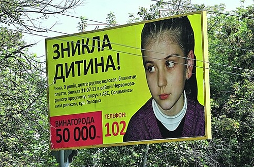 Пропала девочка. Такими билбордами увешан весь город. Киевляне сами раздают и листовки про девочку. Фото: Г. Салай